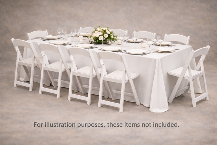 Our 8-foot wooden banquet tables (36” wide) are the preferred choice for tent packages, weddings, and indoor events where presentation and guest comfort matter. The wider 36” surface provides additional room for full place settings, centerpieces, buffet layouts, and décor — creating a more polished and spacious event setup.