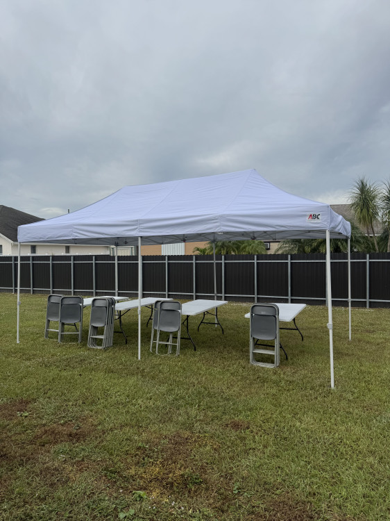 • 10x20 Canopy Tent (white or beige depending on availability)